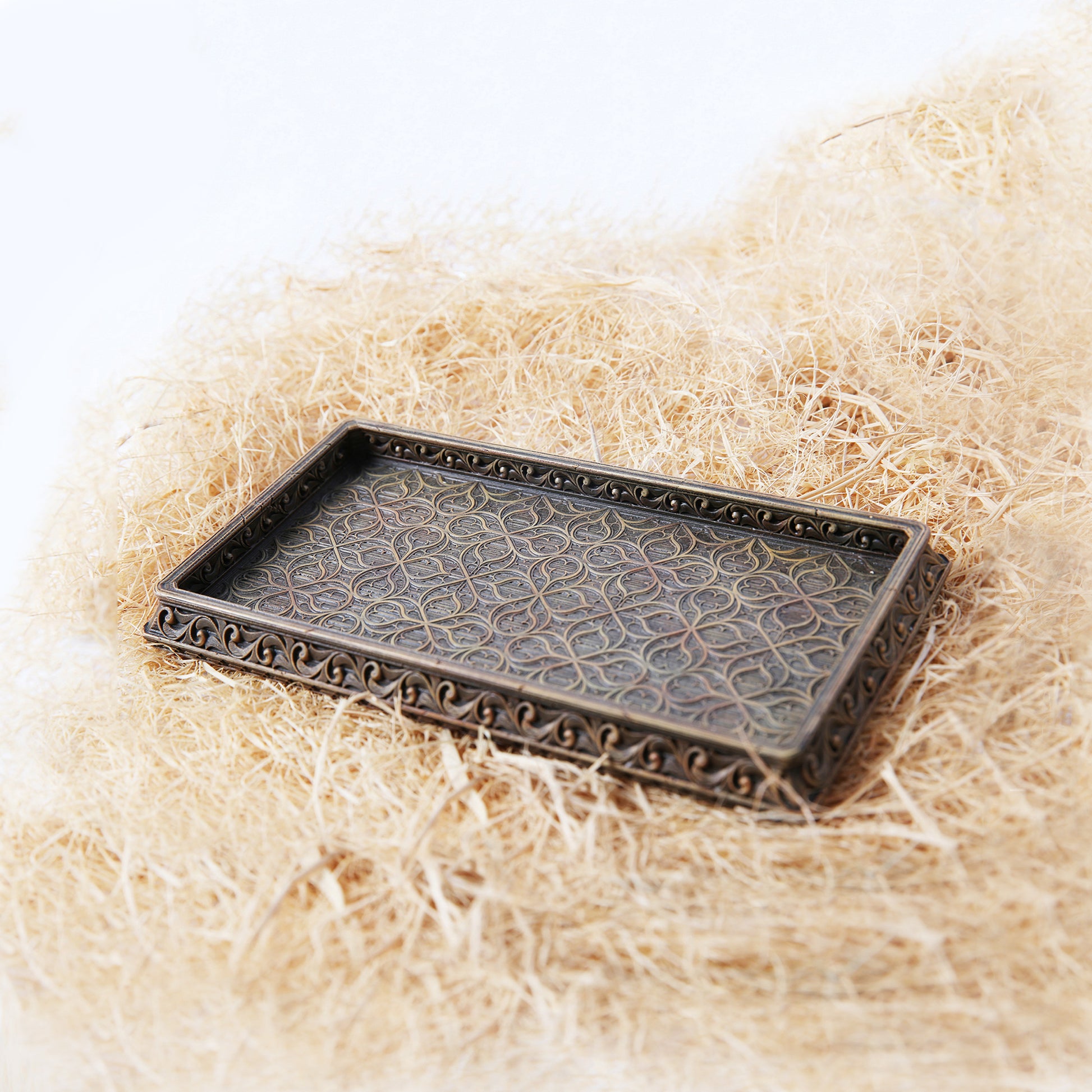 BC Home Decor Decorative Rectangle Tray 8.6 x 4.7 inch, Resin, Vintage Hand Painted, Made by Buildclassic