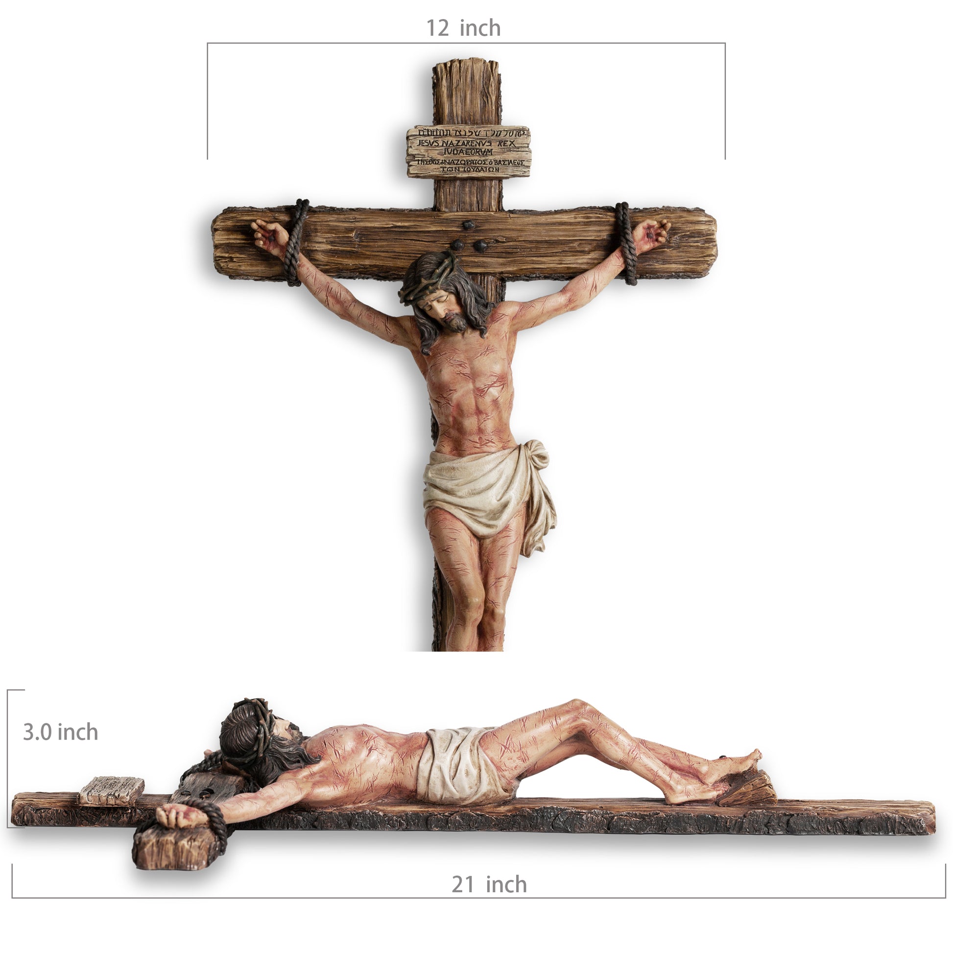 DevotedWalls Extra-Large Catholic Crucifix for Wall,20.75" H Church-Sized Cross of Jesus Christ–INRI, Bloodied Wounds & Realistic Detail for Church, Chapels and Home(Full Color)